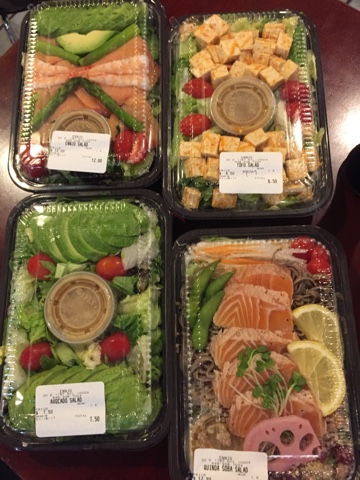 Seared salmon and quinoa rice salad with soba salad
